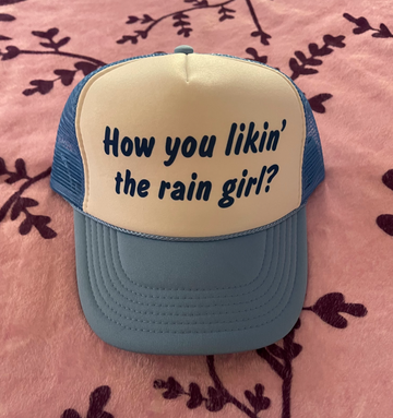 How you Liken the Rain Girl Trucker Hat It features insulated mesh rear panels and...