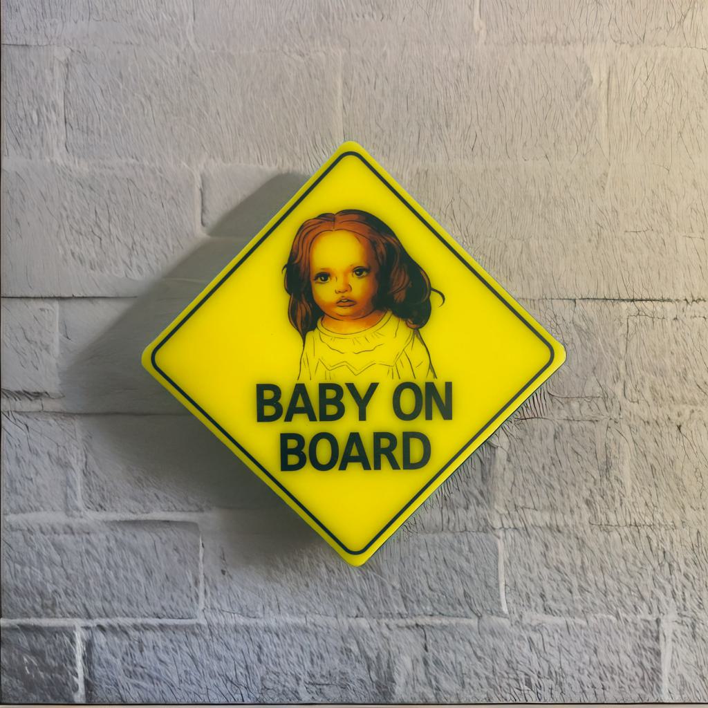 We have Baby on Board Signs, Magnets and Ornaments. They are all UV printed on 1/8 thick Acrylic