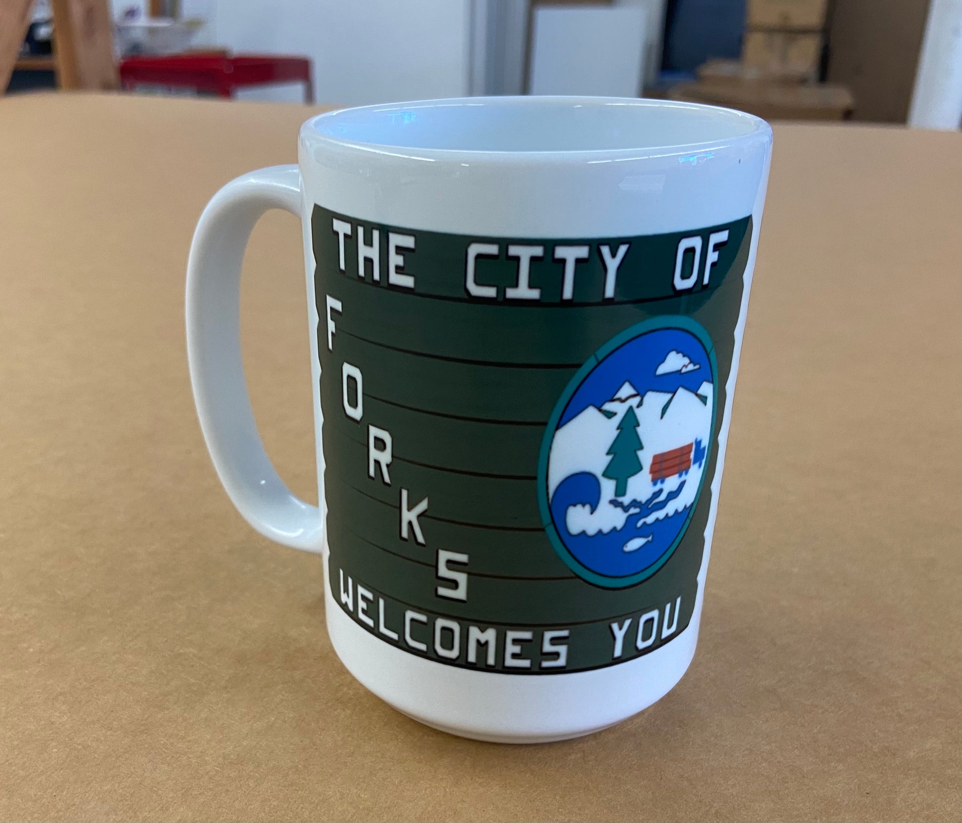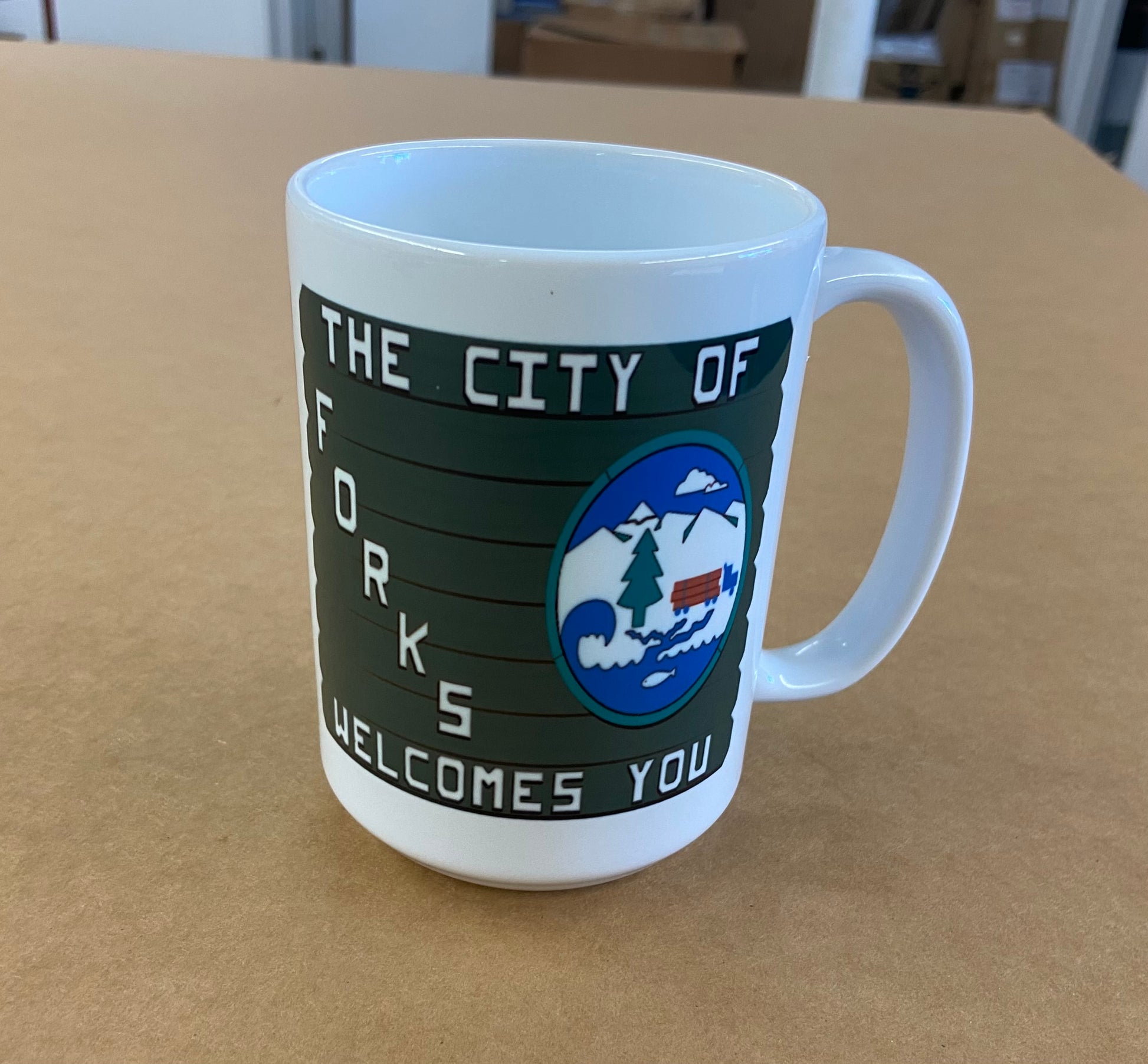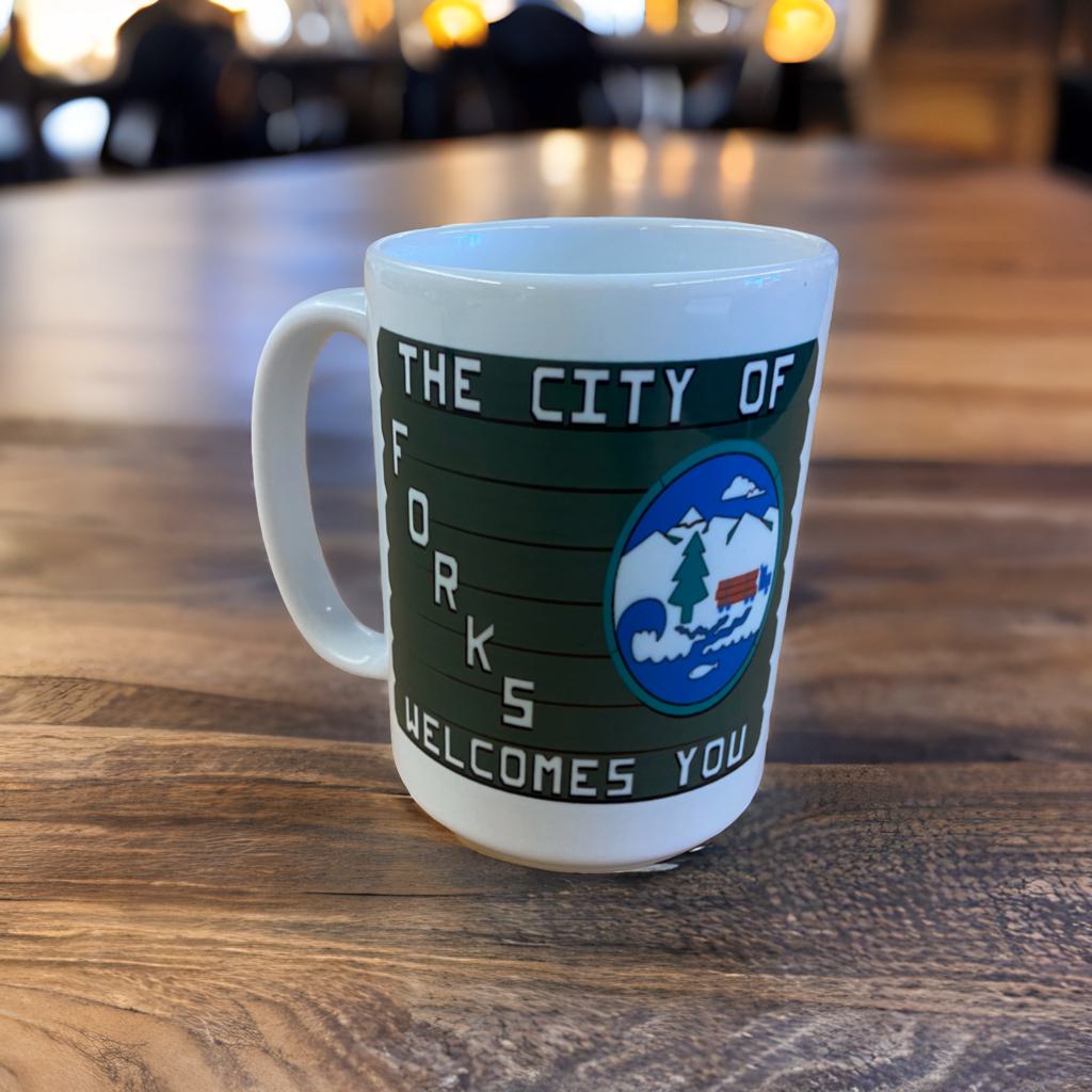 Now you can have your very own mug with the Forks Welcomes You Sign on it!