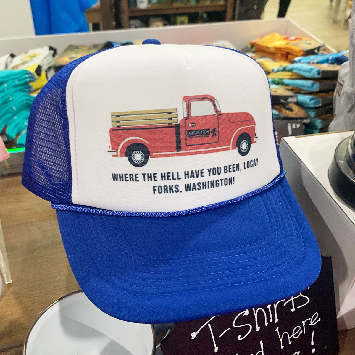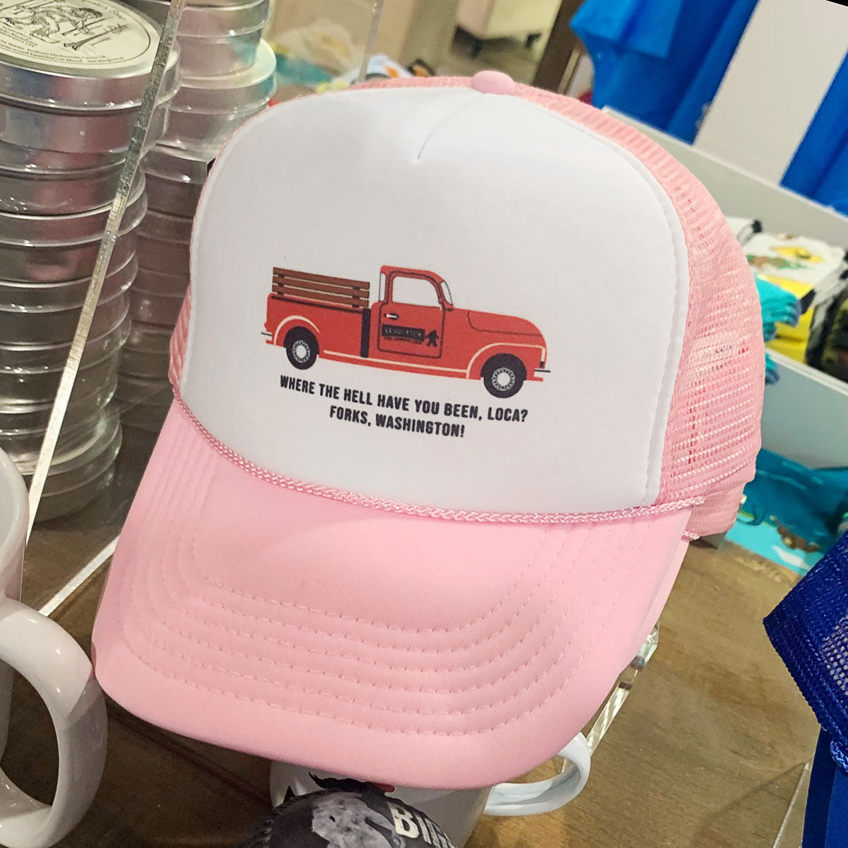 We have 2 style's of this movie quote hat! This one has the quote along with her Truck! The other one is the movie quote in a different font style. Both are great!